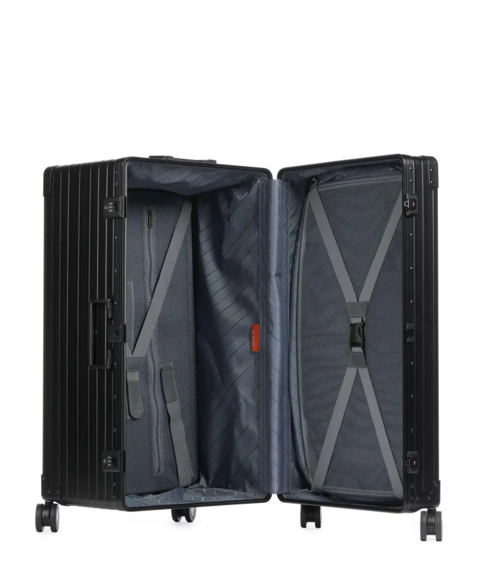 - Rollensystem: 4 Rollen (Spinner), geräuscharme Doppelrollen um 360° schwenkbar