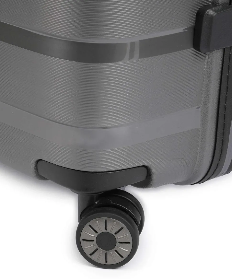 - Rollensystem: 4 Rollen (Spinner), geräuscharme Doppelrollen um 360° schwenkbar