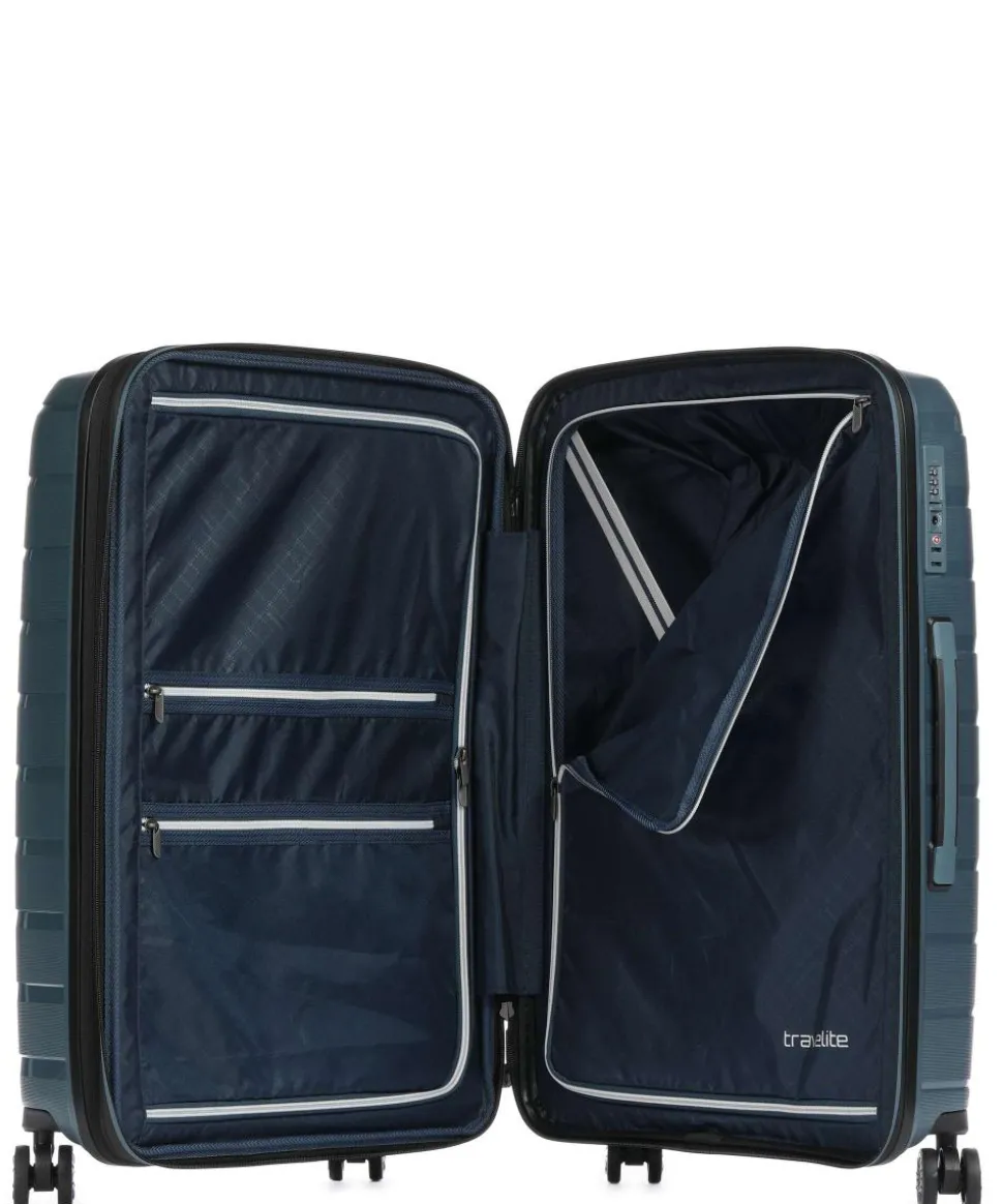 - Rollensystem: 4 Rollen (Spinner), geräuscharme Doppelrollen um 360° schwenkbar