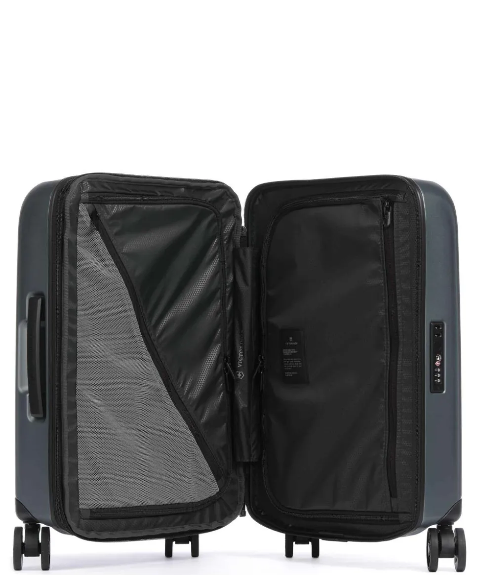 - Rollensystem: 4 Rollen (Spinner), geräuscharme Doppelrollen um 360° schwenkbar