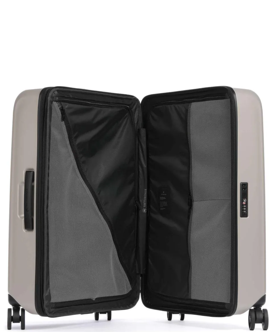 - Rollensystem: 4 Rollen (Spinner), geräuscharme Doppelrollen um 360° schwenkbar