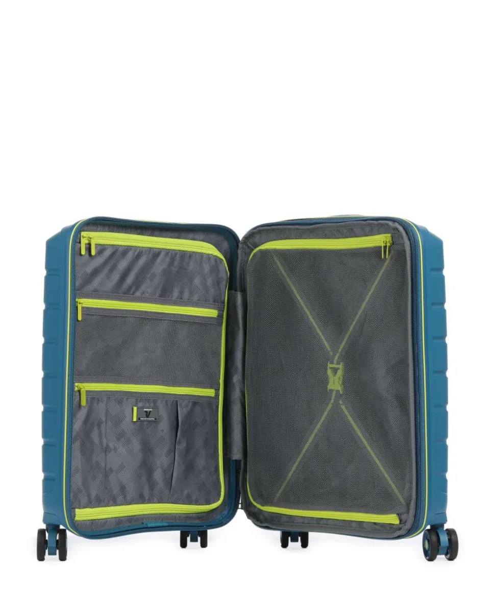 - Rollensystem: 4 Rollen (Spinner), geräuscharme Doppelrollen um 360° schwenkbar