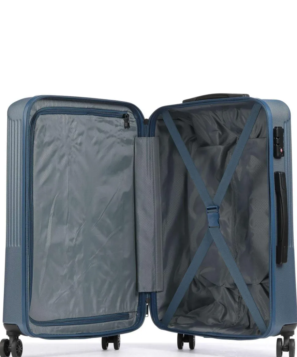 - Rollensystem: 4 Rollen (Spinner), geräuscharme Doppelrollen um 360° schwenkbar