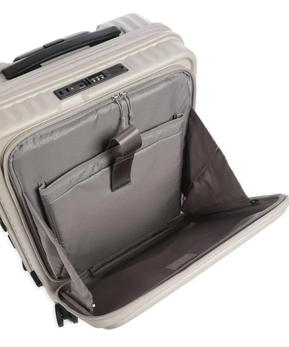 - Rollensystem: 4 Rollen (Spinner), geräuscharme Doppelrollen um 360° schwenkbar