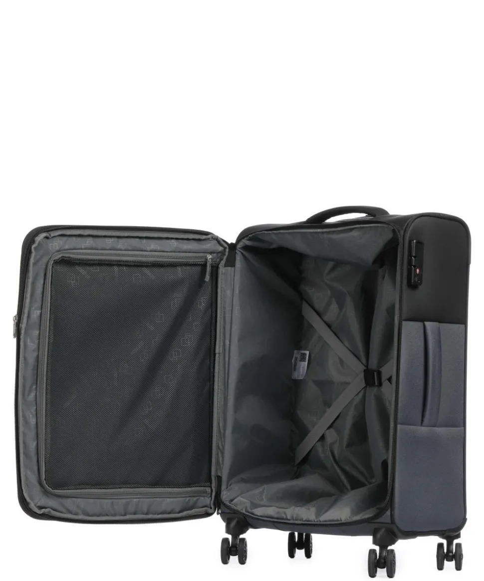 - Rollensystem: 4 Rollen (Spinner), geräuscharme Doppelrollen um 360° schwenkbar