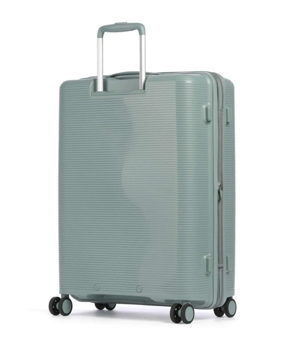 - Rollensystem: 4 Rollen (Spinner), geräuscharme Doppelrollen um 360° schwenkbar
