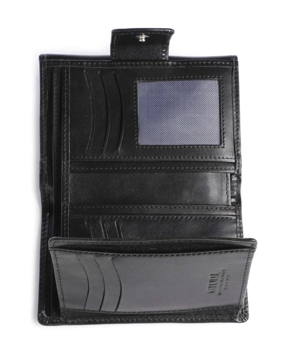 - Fach für Dokumente, transparentes Fach für Fotos oder Ausweise, Fächer für Geldscheine und Quittungen, Kleingeldfach mit Druckknopf