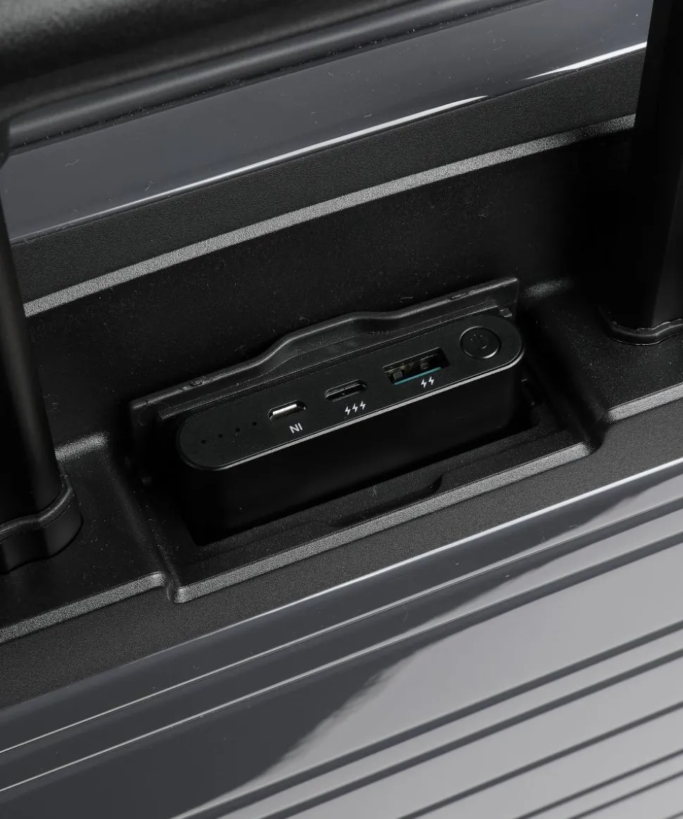- Kompressionsgurte, integrierter Powerpack-Akku, Raumteiler mit Reißverschlussfach