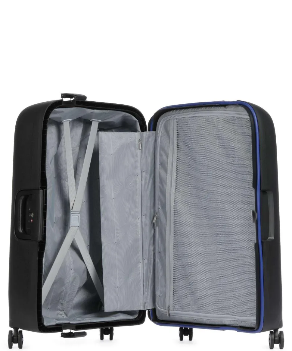 - Rollensystem: 4 Rollen (Spinner), geräuscharme Doppelrollen um 360° schwenkbar