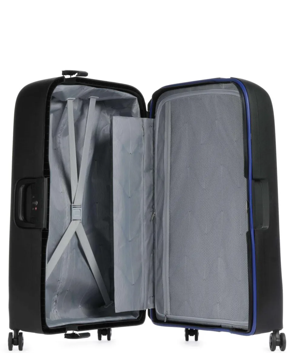 - Rollensystem: 4 Rollen (Spinner), geräuscharme Doppelrollen um 360° schwenkbar