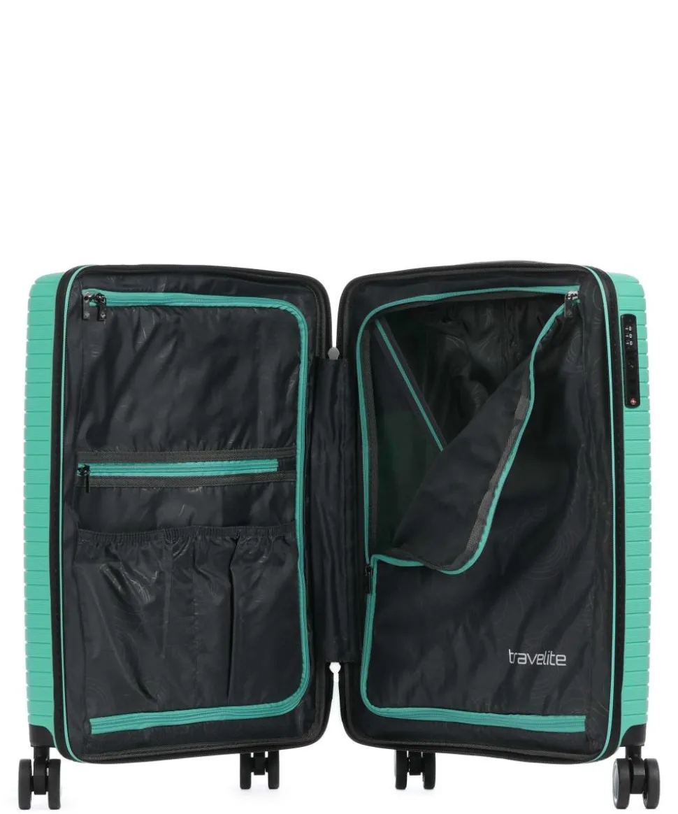 - Rollensystem: 4 Rollen (Spinner), geräuscharme Doppelrollen um 360° schwenkbar