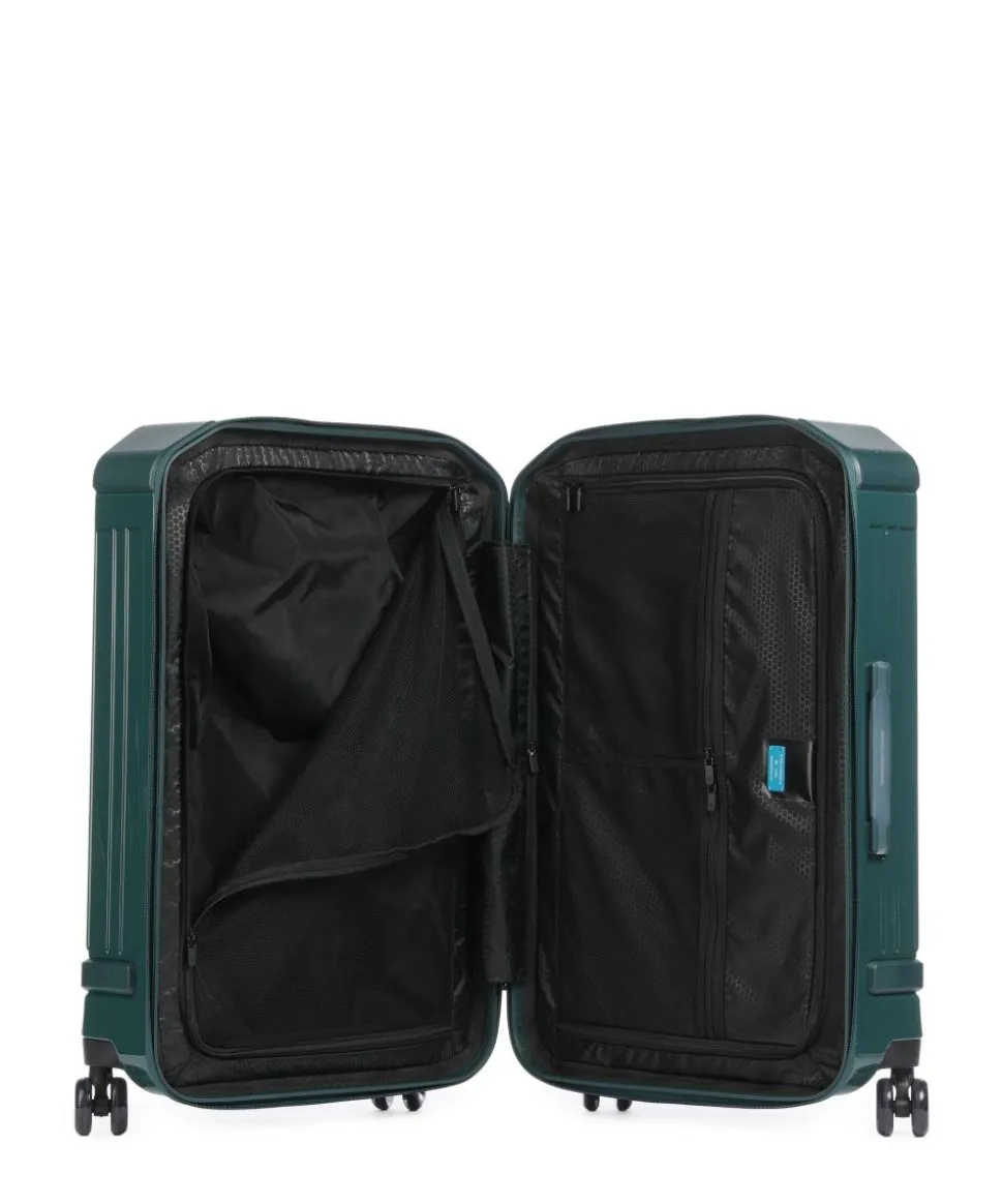 - Rollensystem: 4 Rollen (Spinner), geräuscharme Doppelrollen um 360° schwenkbar