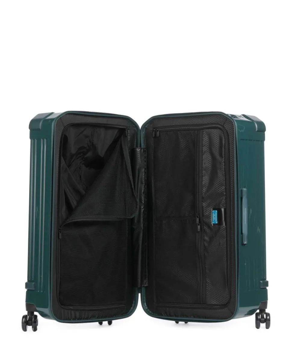 - Rollensystem: 4 Rollen (Spinner), geräuscharme Doppelrollen um 360° schwenkbar