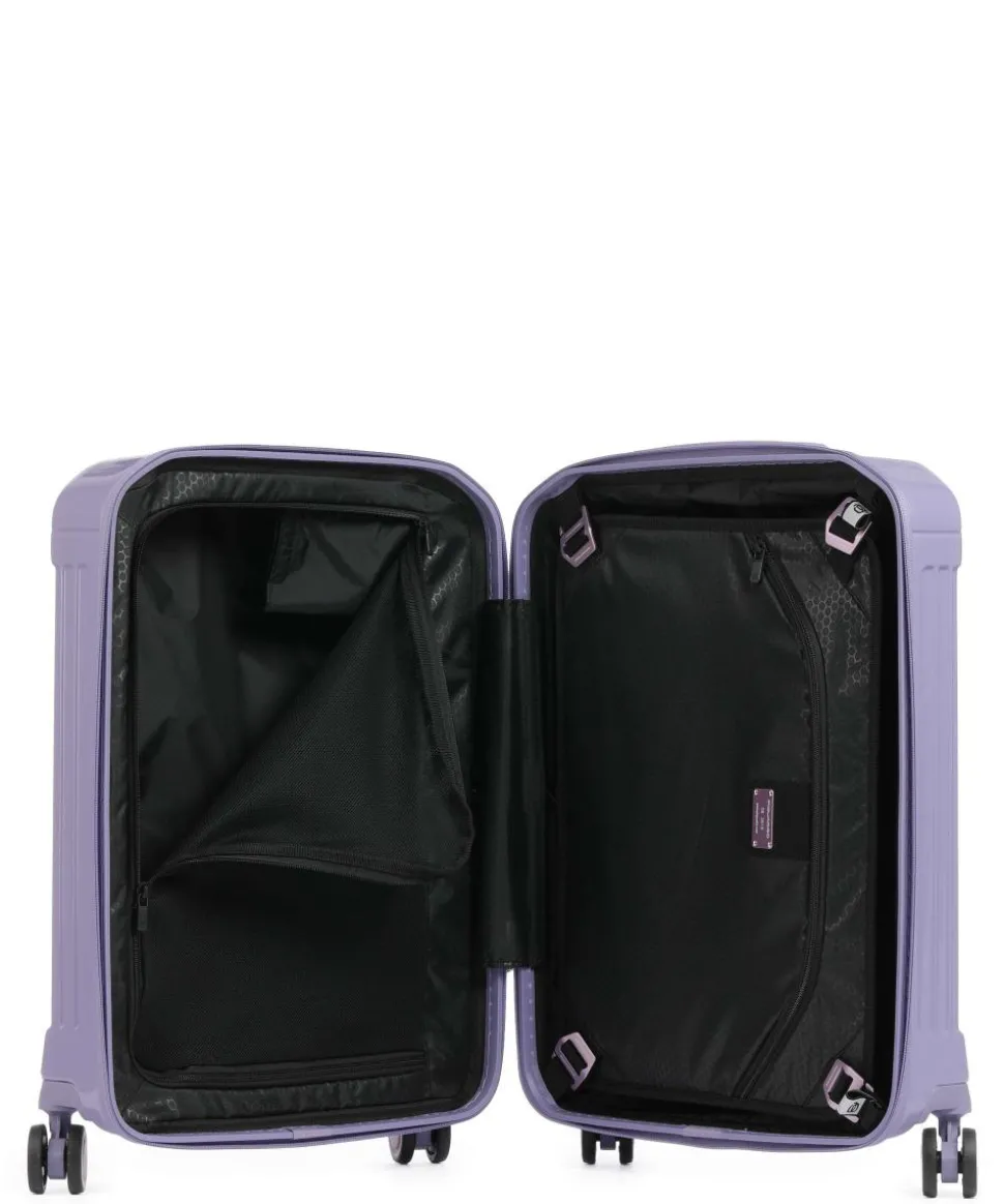 - Rollensystem: 4 Rollen (Spinner), geräuscharme Doppelrollen um 360° schwenkbar