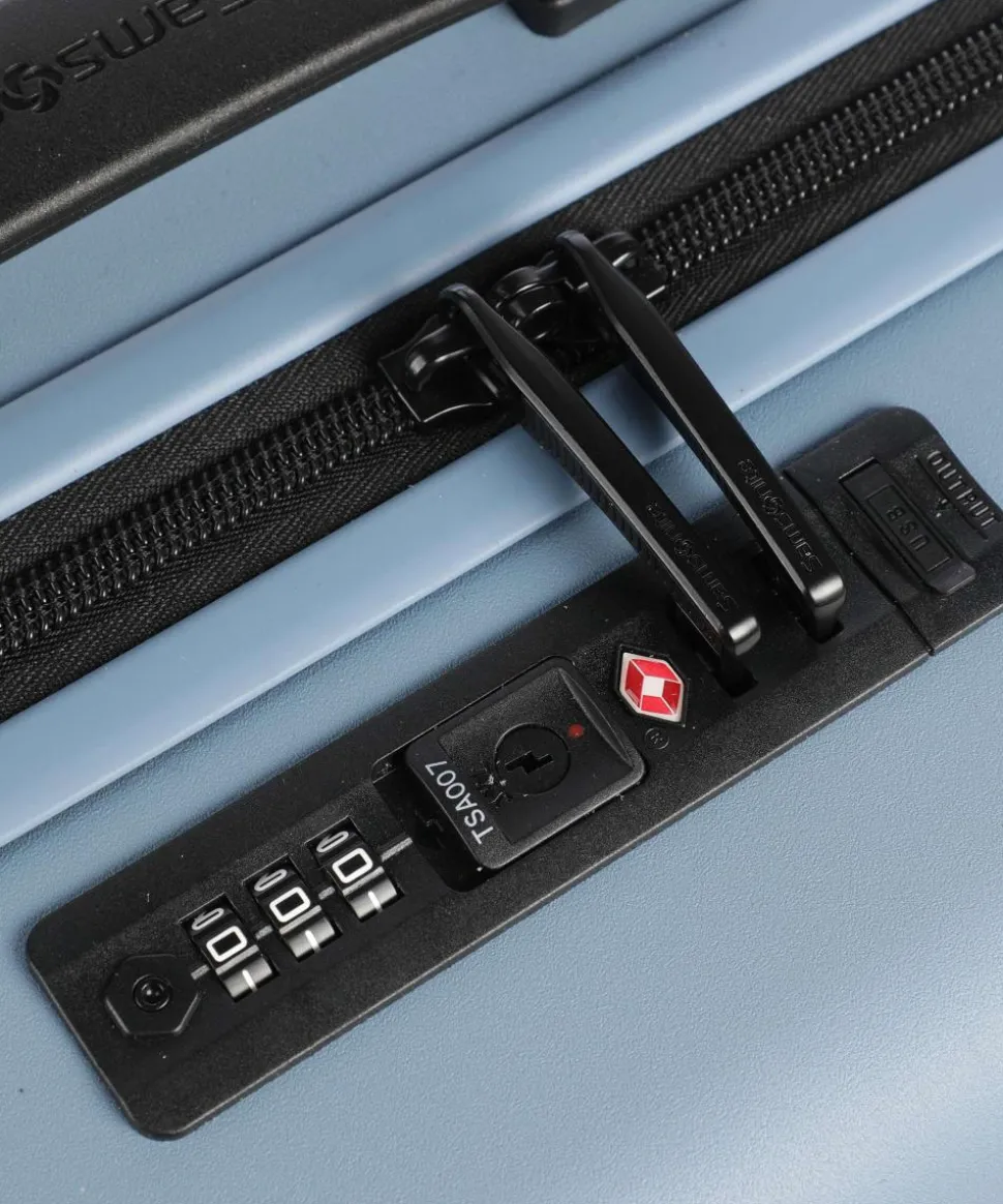 - Rollensystem: 4 Rollen (Spinner), geräuscharme Doppelrollen um 360° schwenkbar