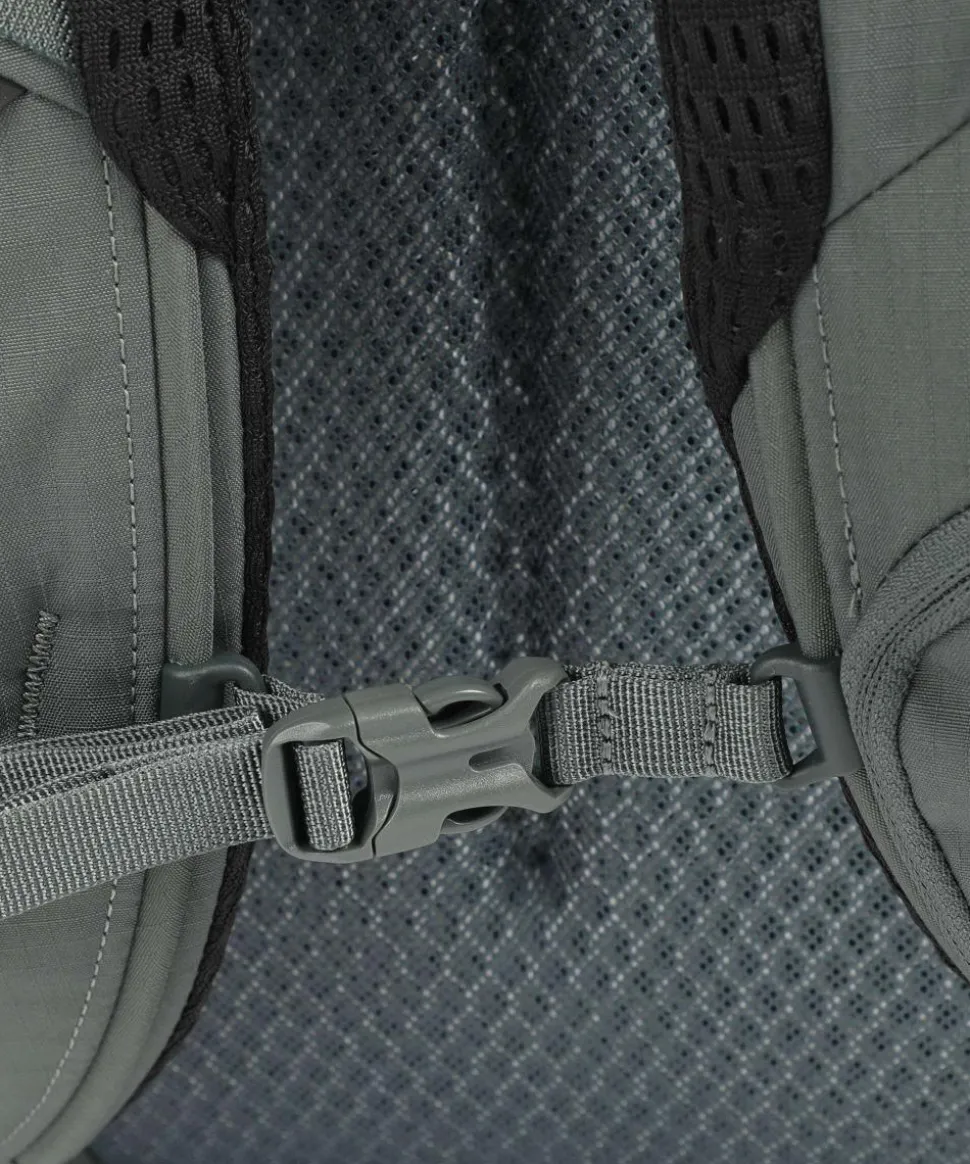 - Rucksackgurte: gepolstert, ventiliert, mit Reißverschlussfach