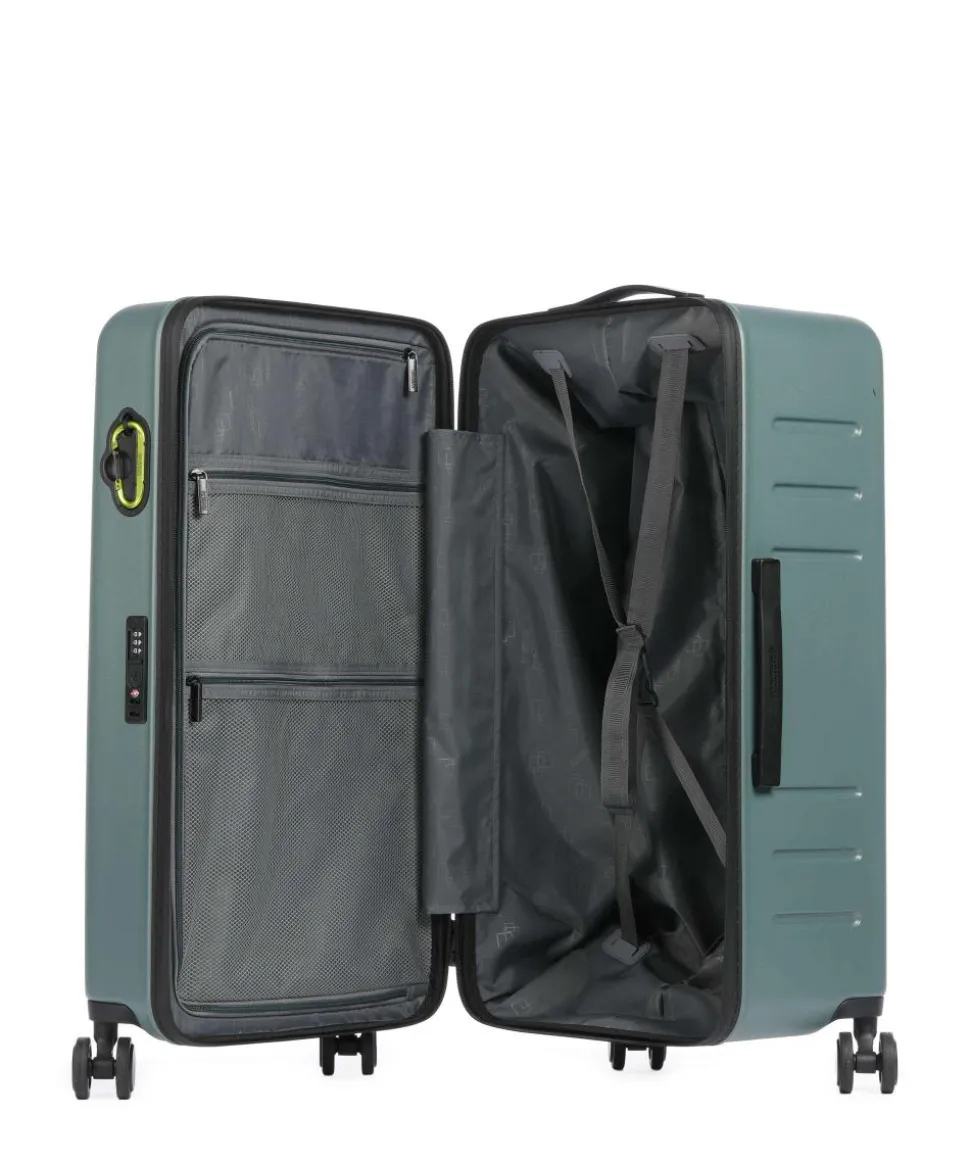 - Rollensystem: 4 Rollen (Spinner), geräuscharme Doppelrollen um 360° schwenkbar