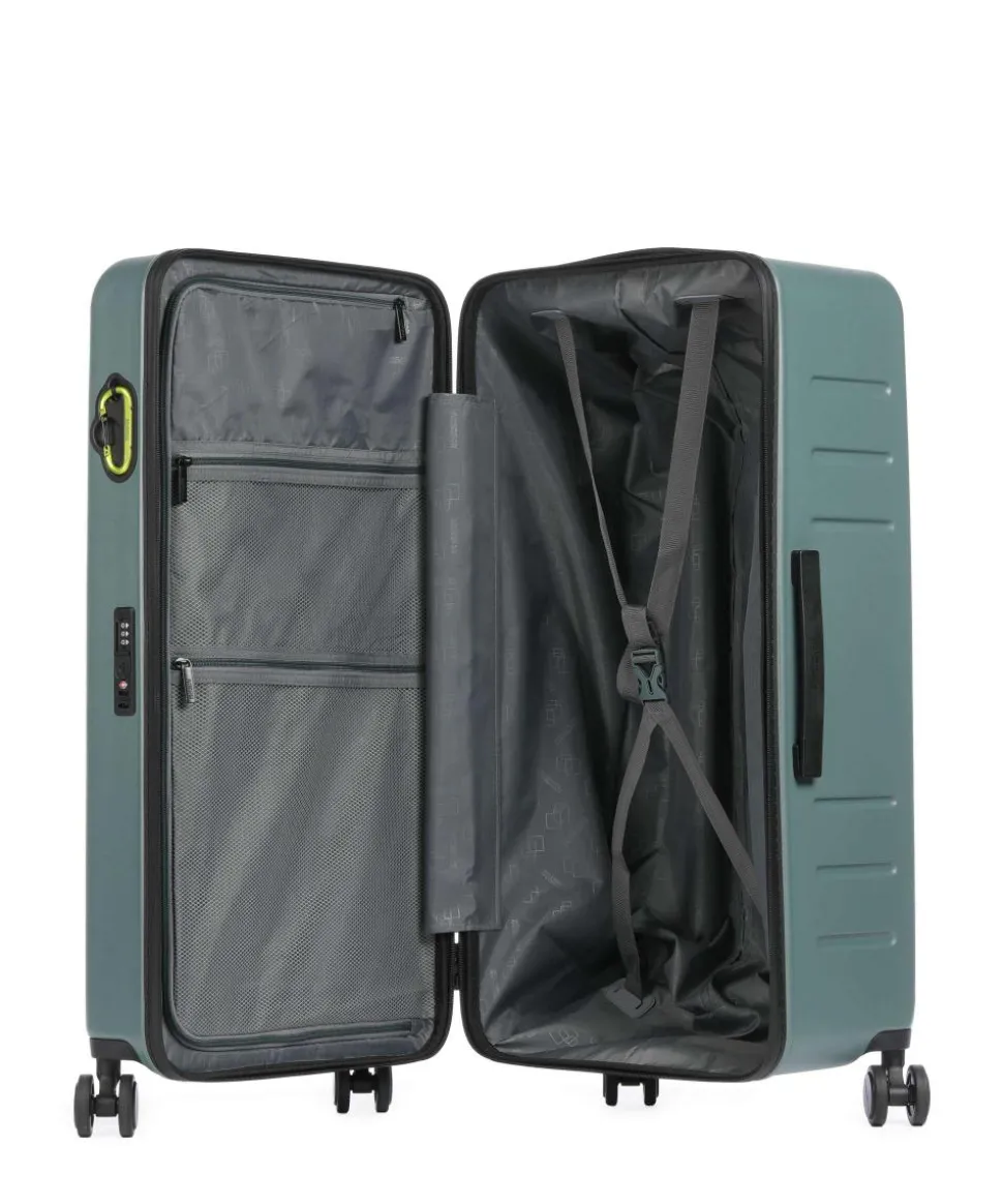 - Rollensystem: 4 Rollen (Spinner), geräuscharme Doppelrollen um 360° schwenkbar