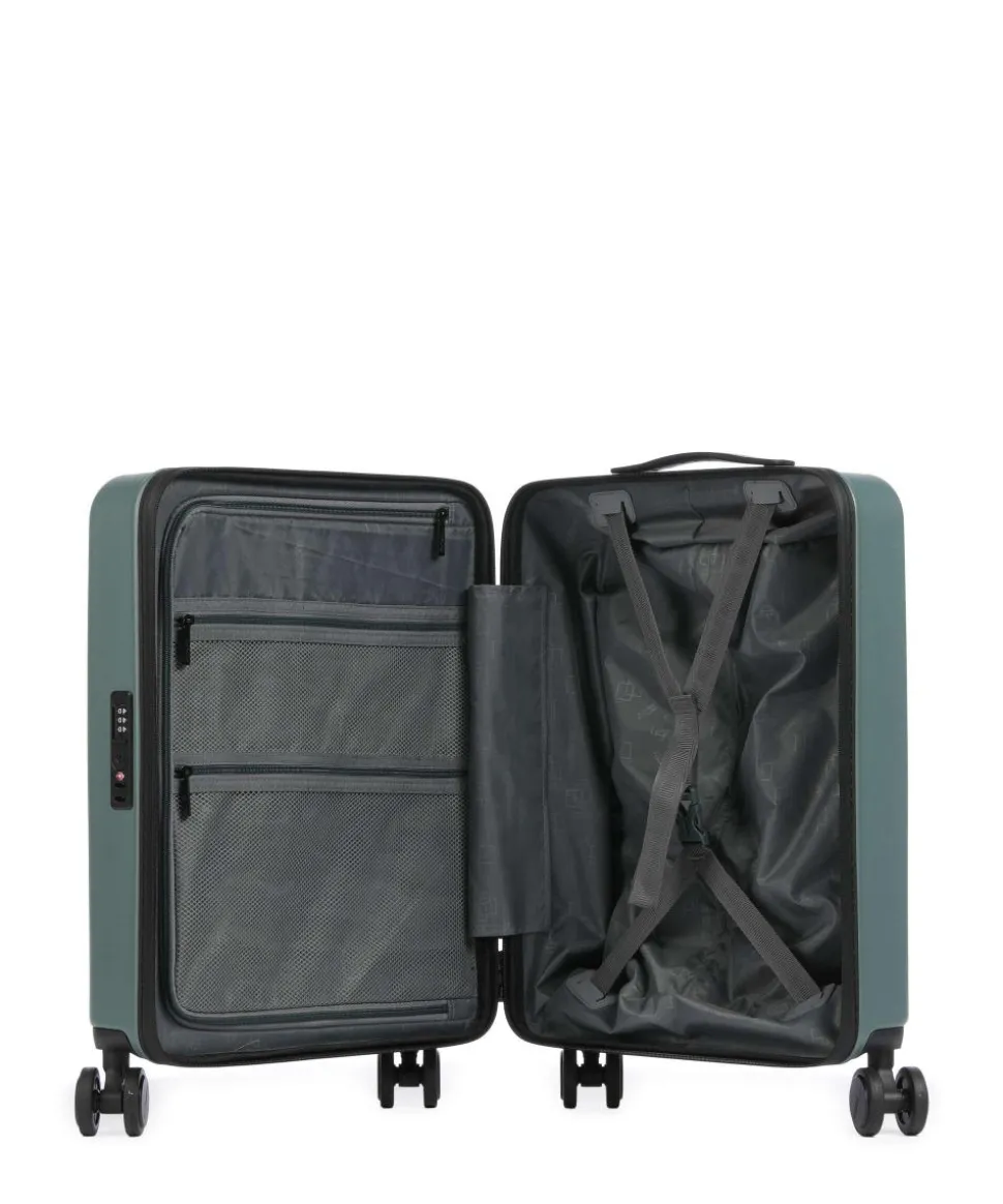 - Rollensystem: 4 Rollen (Spinner), geräuscharme Doppelrollen um 360° schwenkbar