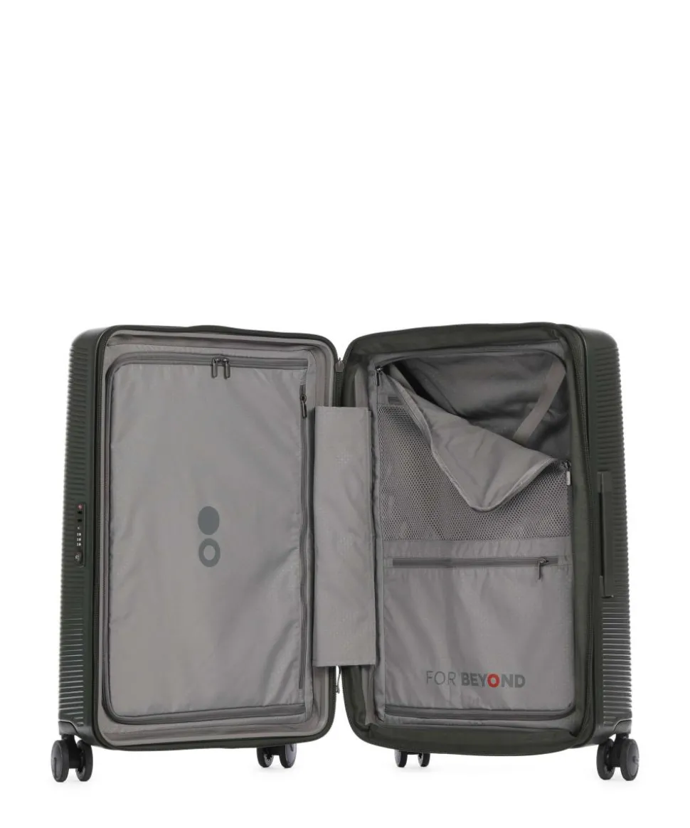 - Rollensystem: 4 Rollen (Spinner), geräuscharme Doppelrollen um 360° schwenkbar