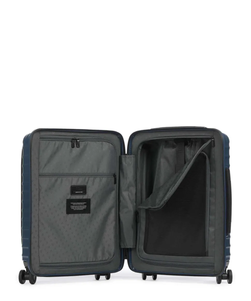 - Rollensystem: 4 Rollen (Spinner), geräuscharme Doppelrollen um 360° schwenkbar